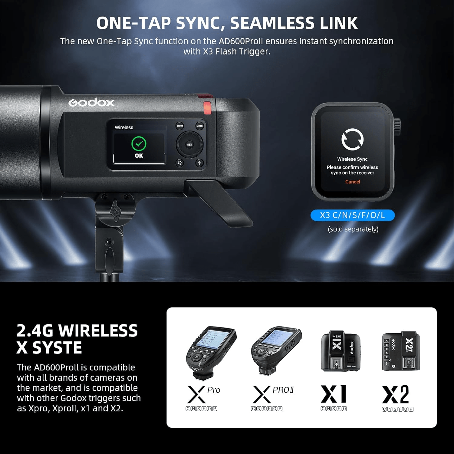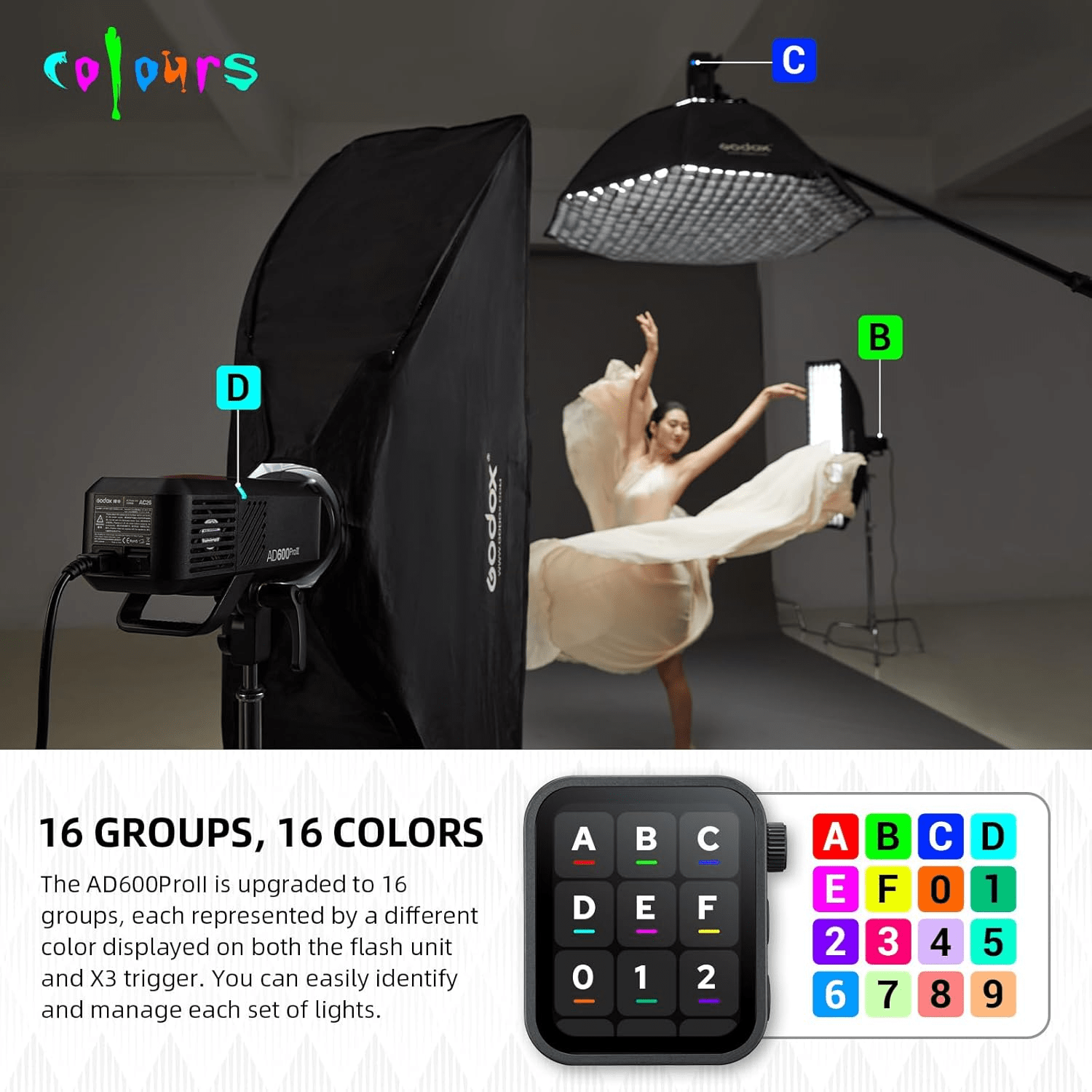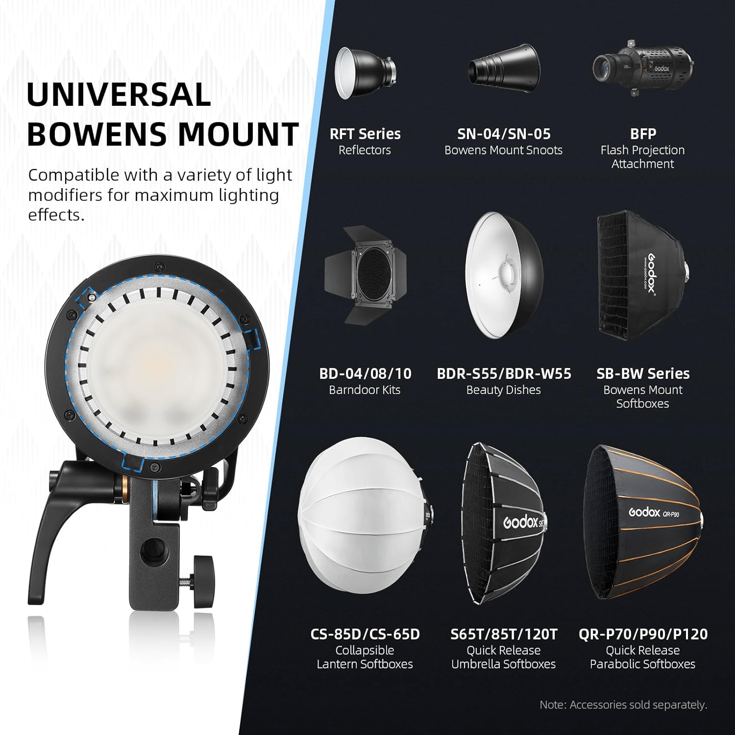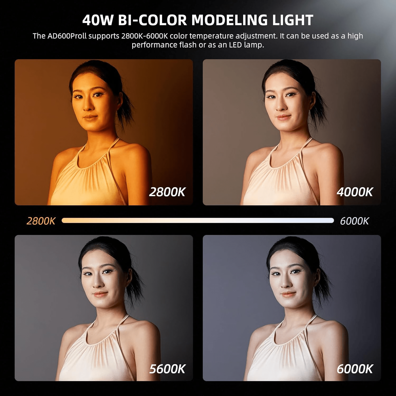 - Ce flash de studio a une puissance de flash et d\'indice de netteté différents des autres modèles de cette série, et les versions V sont équipées d\'une lampe LED au lieu d\'une lampe halogène.