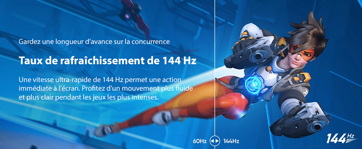 - La technologie d'imagerie 144 Hz offre un temps de réponse ultra-rapide de 13 ms.